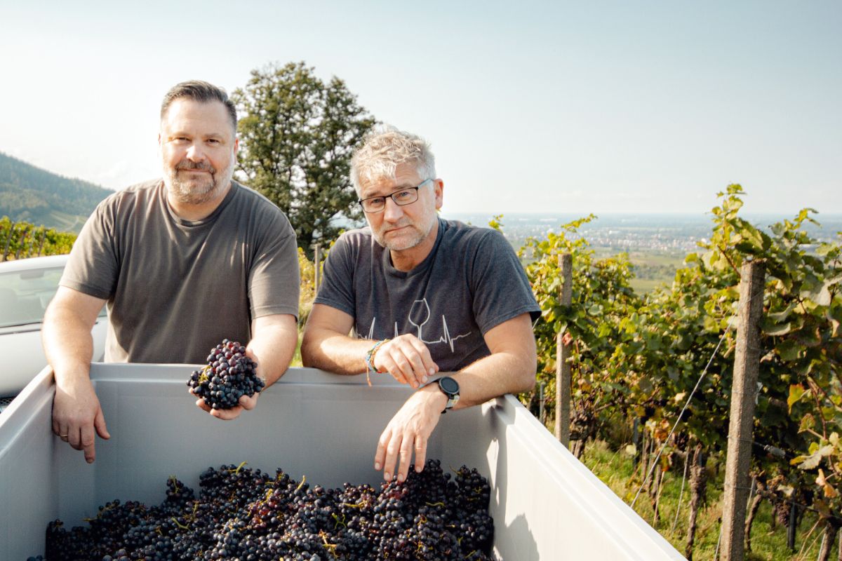 Alles begann 2020 – mit Neugier, viel Herzblut und einer echten Doppelgarage. Dort kelterten Marc Bürkle und Uwe Link ihre ersten Weine, spontan vergoren, unfiltriert, ungeschönt. Heute ist aus dem Garagenprojekt ein kleines, feines Weingut geworden – mitten im Rebland, am Rand des Nationalparks Schwarzwald. Immer noch in einer Doppelgarage.